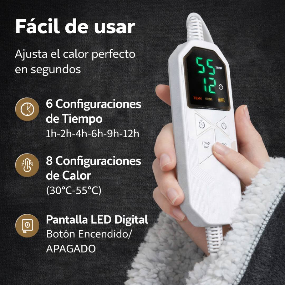 Con el mando digital ajusta el calor en segundos. Selecciona el nivel que más te apetezca y relájate con total tranquilidad gracias al apagado automático. Solo preocúpate de disfrutar.